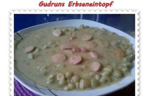 zutaten_2sp"> Zutaten für Personen Rezept mit Bild: Eintopf: Erbseneintopf Bild einstellen 400 Gr. getrocknete grüne Erbsen Wasser und Lorbeerblätter zum Einweichen über Nacht 2 große Kartoffeln, gesc [...]