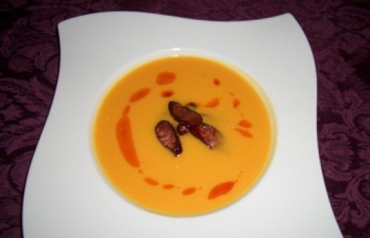 zutaten_2sp"> Zutaten für Personen Bild einstellen 1 kg Hakkaido-Kürbis 3 Stk. Möhren 5 cm Ingwer gehackt 1 Liter Gemüsebrühe 500 ml Kokosmilch 1 Stk. Zwiebel 1 EL Butter 2 EL Kürbisöl 1 Stk. Knacker oder Chori [...]