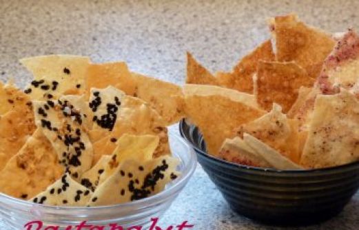 zutaten_2sp"> Zutaten für Personen Rezept mit Bild: Yufkateig-Chips Bild einstellen 6 Blatt Yufkateig 150 g Butter flüssig Zucker braun Rohzucker Sesam schwarz Meersalz Sesamkörner weiß Zi [...]