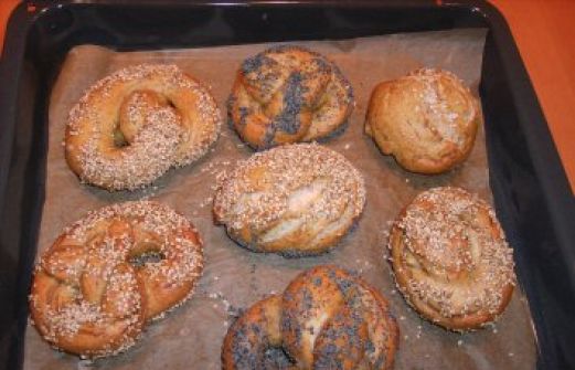 zutaten_2sp"> Zutaten für Personen Rezept mit Bild: Laugenbrezel mit Sesam / Mohn / Salz Bild einstellen 400 g Mehl 100 g Weizenvollkornmehl 1 Würfel Hefe 1 TL Honig 260 ml warmes Wasser 1 TL Salz [...]
