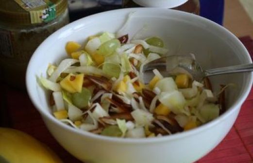 zutaten_2sp"> Zutaten für Personen Rezept mit Bild: Chicoreesalat mit Melone und Trauben Bild einstellen 2 Chicoree frisch 400 g Trauben grün kernlos 1 Mango frisch 0.5 Honigmelone 100 g Datteln 250 ml [...]