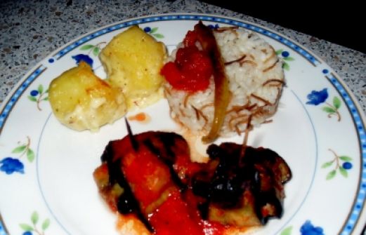 Menge Zutat 2 St Auberginen 150 g Hackfleisch 1 St Knoblauchzehe 4 St Spitzpaprikas 1 Dose Tomatenstücken etwas Salz, Pfeffer [...]