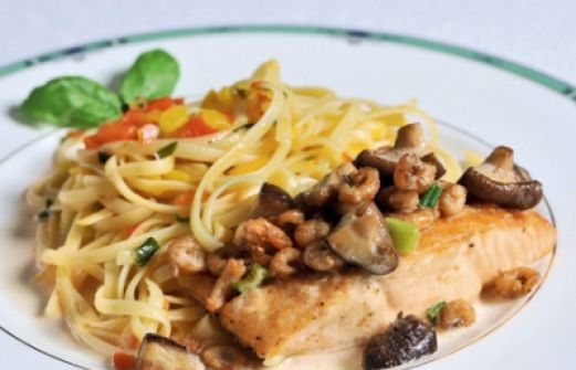 Menge Zutat 100 g Schalotten 200 g Butter 1/4 l Weißwein 1/4 l Fischfond 8 St Shiitake-Pilze 1 mittlere Frühlingszwiebel [...]